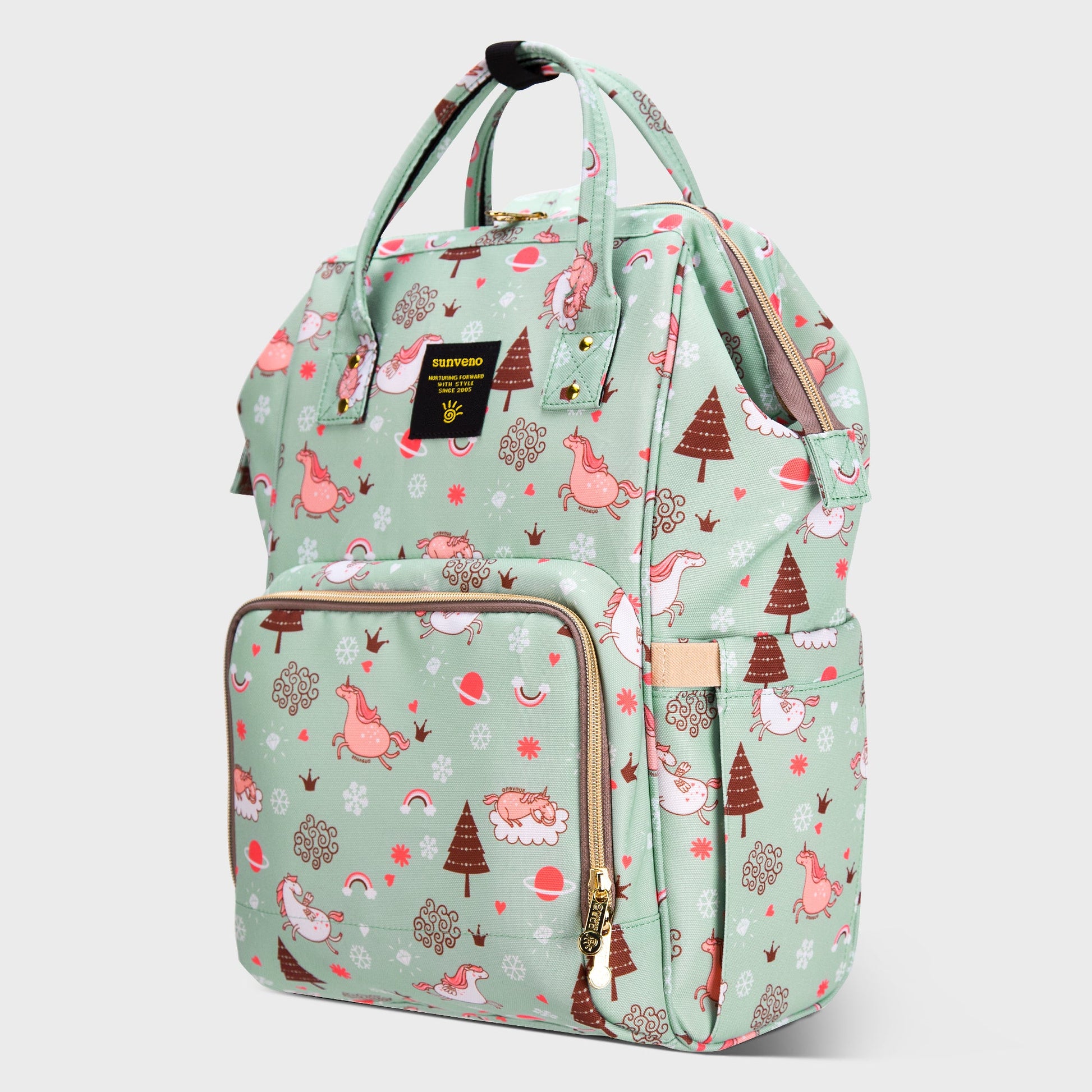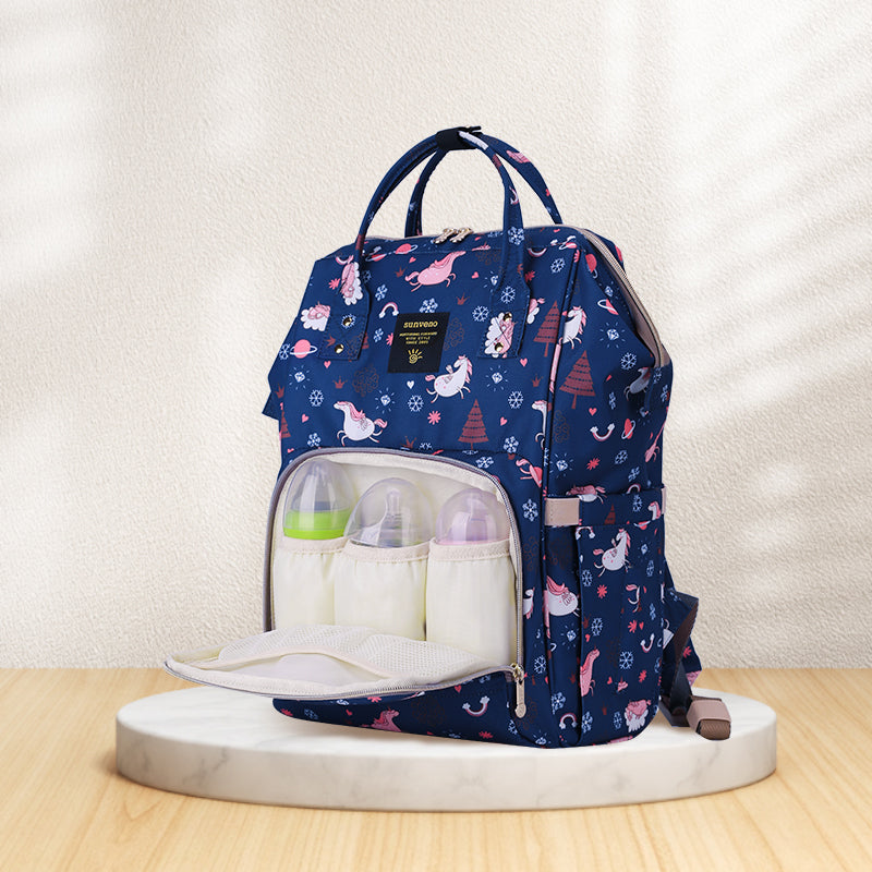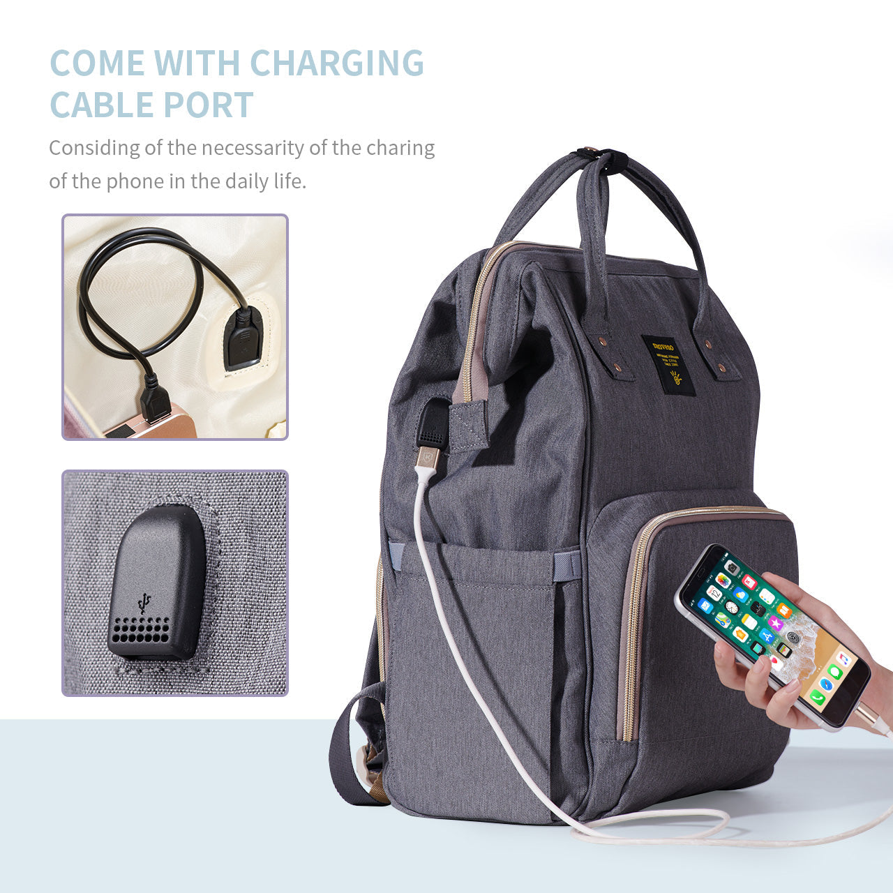 This stylish and trendy universal diaper bag is the perfect everyday bag for a mommy on the go! Tote around everything you need for babies, infants, and toddlers with this spacious baby diaper bag backpack that features 13 storage pockets and a USB port, complete with zippers for easy closure and three insulated pockets for bottles, snacks, and more.