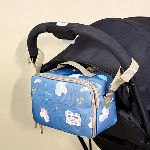 - Attach to stroller with Velcro straps or use the shoulder strap